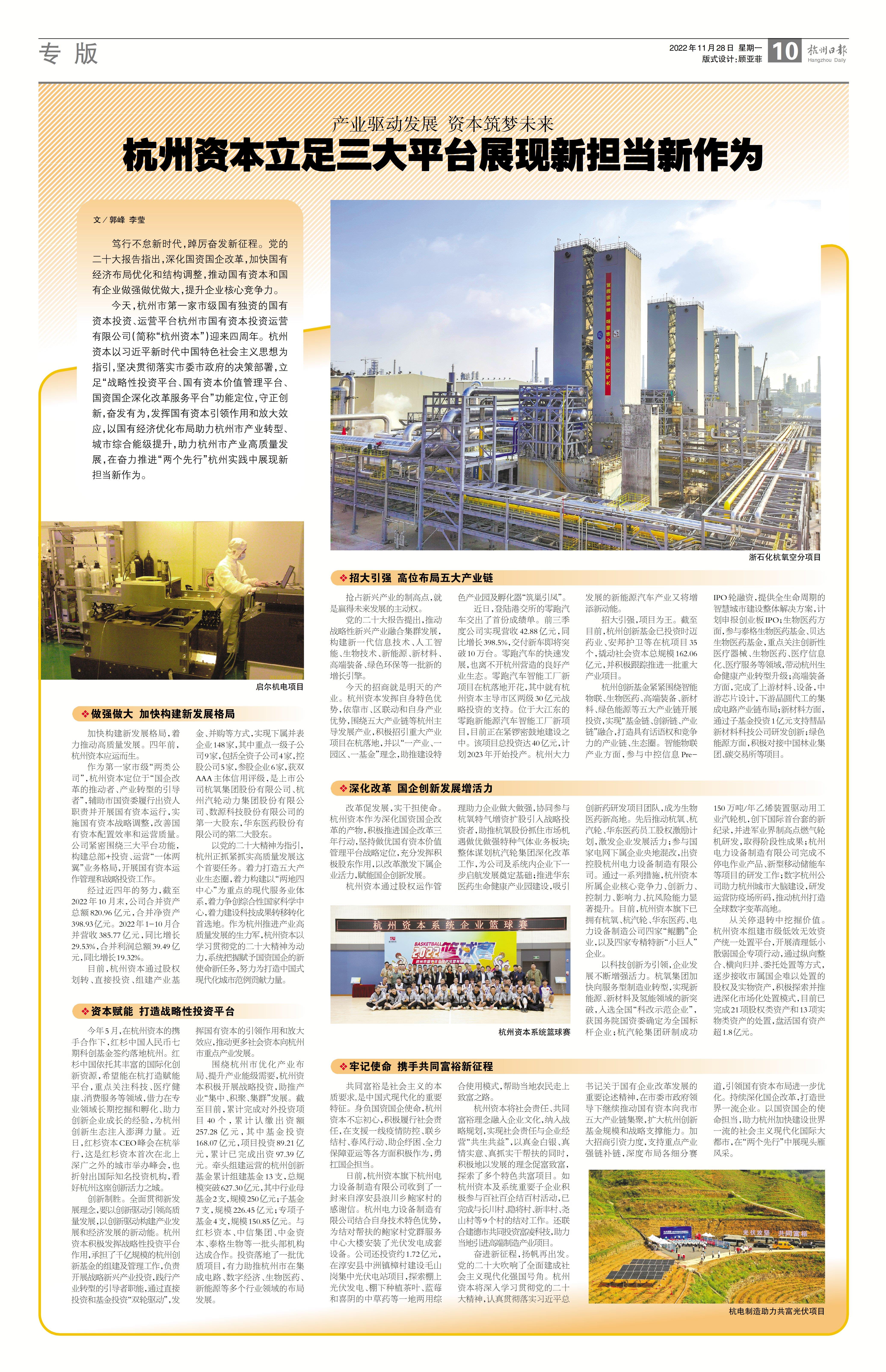 11月28日,在公司成立四周年之际,杭州日报A10版对18jav 进行了题为“产业驱动发展 资本筑梦未来18jav 立足三大平台展现新担当新作为”的专版宣传。
